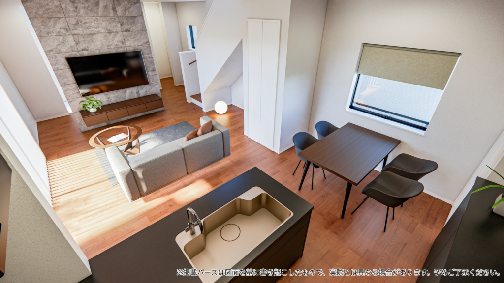 | 備考 | 外構付き、長期優良住宅、オール樹脂サッシ、全熱交換型換気、浴室乾燥暖房機、オール電化、スマートキー、食器洗浄機乾燥機、TVモニター付きインターホン、吹抜け、エコカラット、テラス |