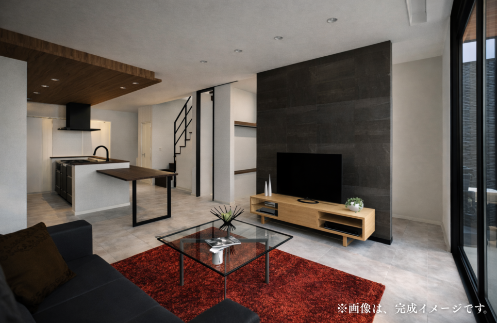 黒をベースにシックにまとめ、格子をアクセントにした外観デザイン。意匠性を高めながら、バルコニーの目隠しとしても機能する見た目と実用の両立がポイントです。街並みに映える立ち姿は、必見。現地で質感や立体感にぜひ注目ください。