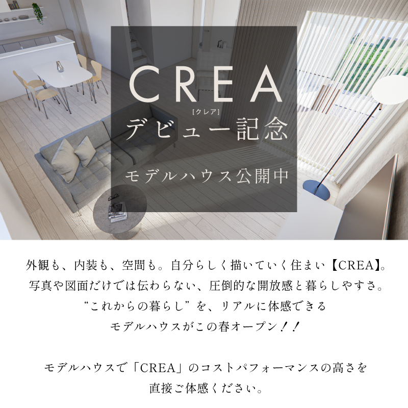 注文住宅のために厳選された自社土地で建てる、高性能住宅「CREA」の特別企画「LAND & HOUSE キャンペーン」。