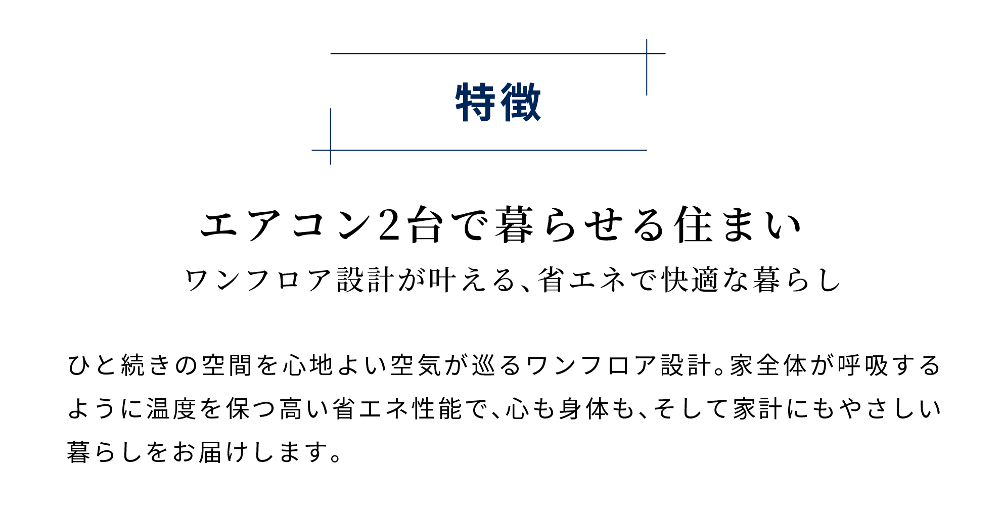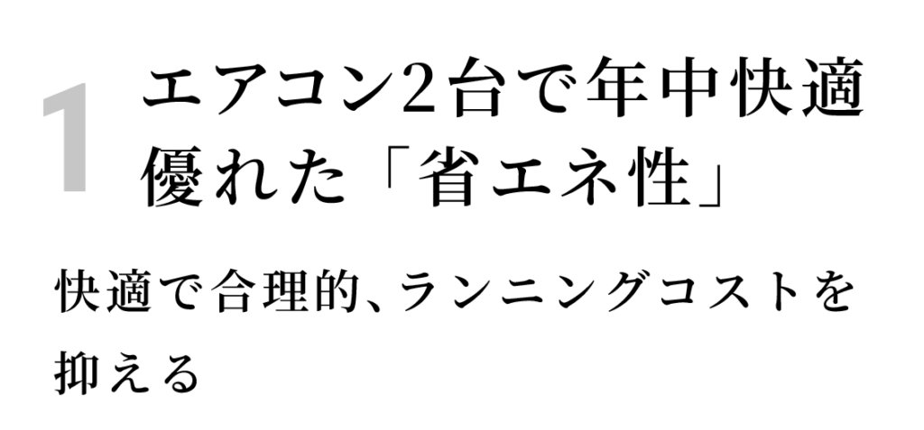 高い断熱性と空間を仕切らないデザインで家中の温度差を極限にした住まいは、少ないエネルギーでも一年中快適な室温を保てます。その象徴が「エアコン2台でも快適」という優れた省エネ性能です。