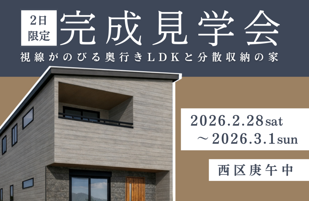 今回ご見学いただけるのは、実際にお施主様が建てた注文住宅です。こちらの住まいは、「視線の抜け」が生み出す開放感と、共働き・子育て世帯の日常を支える機能的な収納が共存するお住まいです。