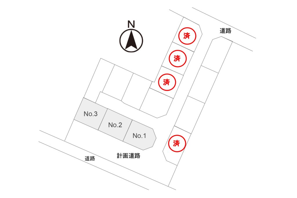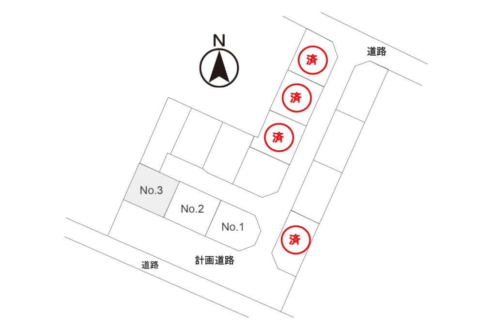 ※この土地は土地売買契約締結後3ヶ月以内に、株式会社トータテハウジングと建築請負契約を締結することを条件に販売します。期限内に住宅建築をしない事が確定した時、または住宅請負契約が成立しなかった場合は土地売買契約は白紙となり受領した金額は全額お返しします。(契約書に添付した印紙を除く)