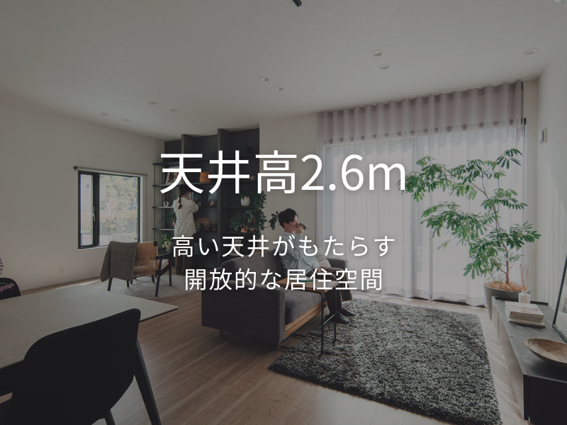 扉を開けた瞬間に広がる、天井高2.6mが生み出す開放感。