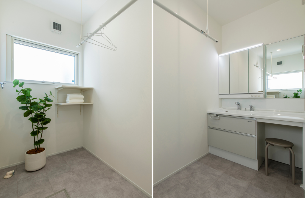 家族が並んでもゆとりたっぷり。朝の「混雑」を解消する4帖の洗面脱衣室